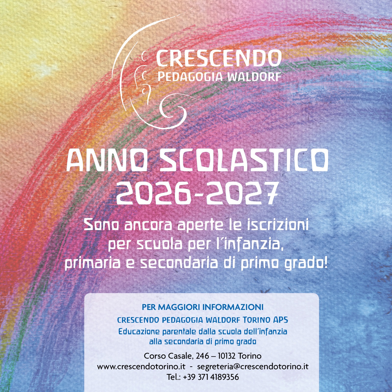 L’Associazione Crescendo, iscritta alla Federazione delle scuole Steiner-Waldorf, opera in regime di istruzione parentale.
